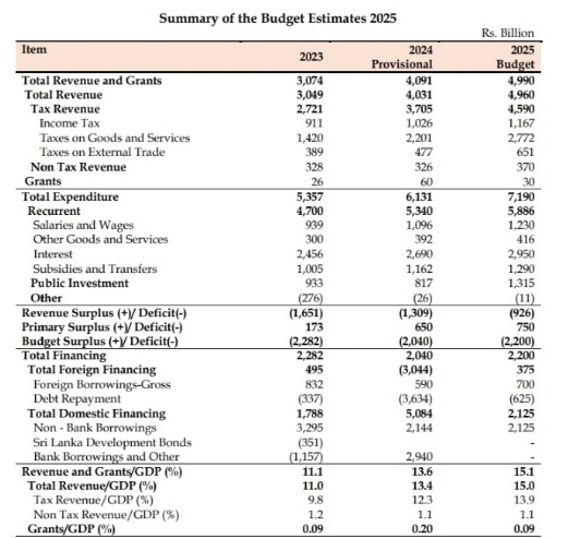 Homeஉள்நாடு2025 பாதீடு! வருமானம், செலவு, பற்றாக்குறை! உள்நாடு 2025 பாதீடு! வருமானம், செலவு, பற்றாக்குறை! By editor February 17, 2025 0 1 Share FacebookTwitterPinterestWhatsApp 2025 பாதீடு! மொத்த வருமானம் – ரூ.4,990 பில்லியன் மொத்த செலவீனம் – ரூ.7190 பில்லியன் துண்டுவிழும் தொகை – ரூ. 2200 பில்லியன் Share FacebookTwitterPinterestWhatsApp Previous articleபாதீடு: 2ஆம் வாசிப்புமீதான விவாதம் நாளை ஆரம்பம்!Next articleபதில் மேன்முறையீட்டு நீதிமன்ற தலைமை நீதியரசராக நீதியரசர் மொஹமட் லபார் தாஹிரின் பதவிக்காலம் நீடிப்பு RELATED ARTICLES Big Story இலங்கை நாடாளுமன்றத்தில் 08 ஆம் திகதி வியட்நாம் ஜனாதிபதி உரை! April 29, 2026 Big Story ஹார்முஸ் நீரிணையில் மீண்டும் கடும் கட்டுப்பாடு! April 18, 2026 Big Story ஹார்முஸ் நீரிணையை மீண்டும் திறந்தது ஈரான்! April 17, 2026 LEAVE A REPLY Cancel reply Comment: Please enter your comment! Name:* Please enter your name here Email:* You have entered an incorrect email address! Please enter your email address here Website: Save my name, email, and website in this browser for the next time I comment. Most Popular இலங்கை நாடாளுமன்றத்தில் 08 ஆம் திகதி வியட்நாம் ஜனாதிபதி உரை! April 29, 2026 ஈரான் தனித்துவிடப்படவில்லை: ரஷ்யாவுக்கு நன்றி தெரிவிப்பு! April 27, 2026 ஈரான் போருக்கும், துப்பாக்கிச்சூட்டுக்கும் தொடர்பா? விசாரணை தீவிரம்! April 26, 2026 இஸ்ரேல், லெபனானுக்கிடையிலான போர் நிறுத்தம் மேலும் நீட்டிப்பு! April 24, 2026 Load more