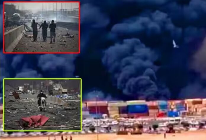 இந்நிலையில், நேற்று இந்த துறைமுகத்தில் இருந்த கன்டெய்னரில் இருந்து திடீரென மர்மபொருள் வெடித்து சிதறியது. இதனால் அப்பகுதி முழுதும் கரும்புகை ஏற்பட்டது.
