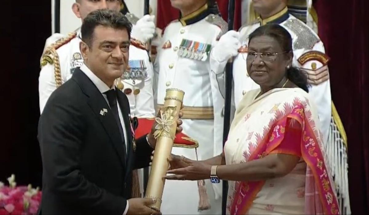 நடிகர் அஜித் குமாருக்கு பத்ம பூஷண் விருதை குடியரசுத் தலைவர் திரவுபதி முர்மு வழங்கி கௌரவித்தார். இந்த நிகழ்வையொட்டி, சமூக வலைதளங்களில் அஜித் ரசிகர்கள் தங்களது மகிழ்ச்சியை பகிர்ந்து வருகிறனர்.