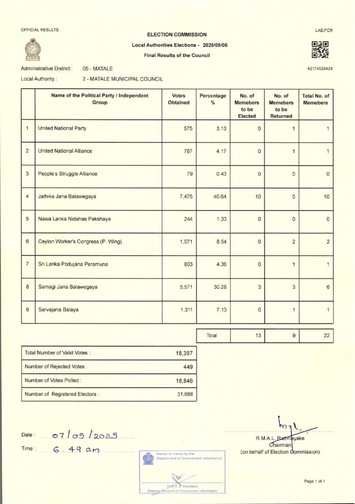 மாத்தளை மாநகர சபையிலும் என்.பி.பி. முன்னிலை: இதொகாவுக்கும் இரு இடங்கள்!