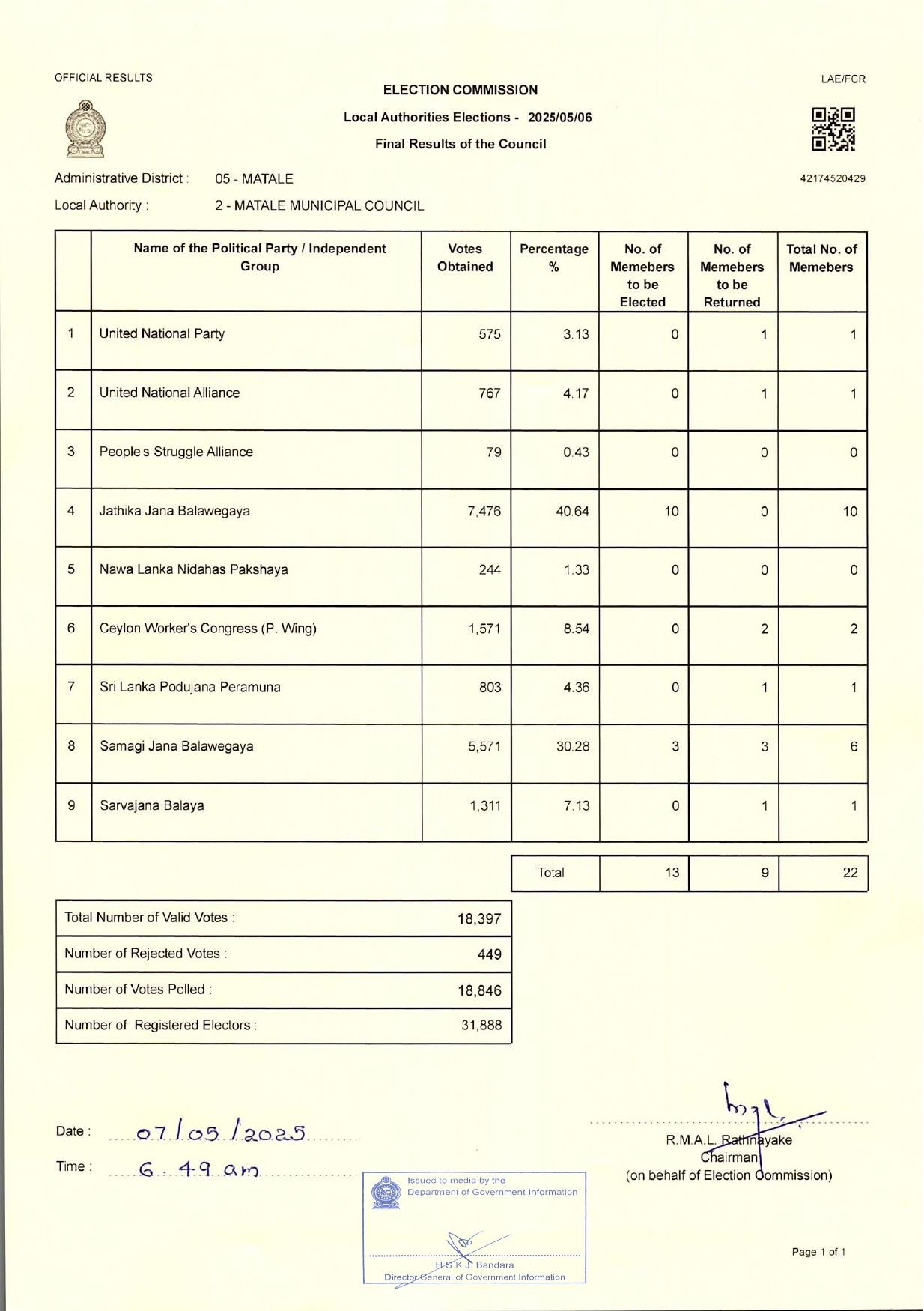 உள்ளூராட்சி சபைத் தேர்தல் முடிவு – 2025 🇱🇰 🗳 –