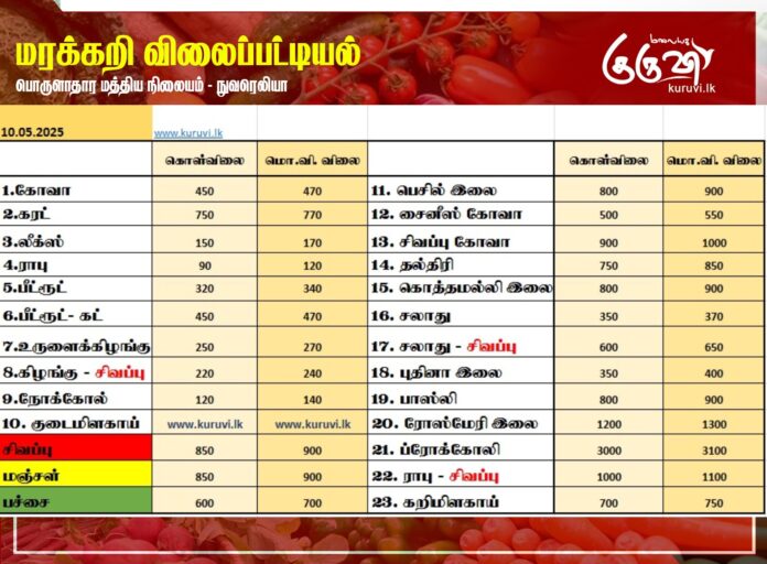 மரக்கறி விலைப்பட்டியல் (10.05.2025)