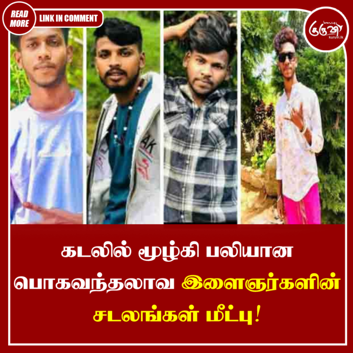 நான்கு இளைஞர்களும் நீராடிக் கொண்டிருந்தபோது கடலலையில் அள்ளுண்டு சென்றுள்ளனர்.
